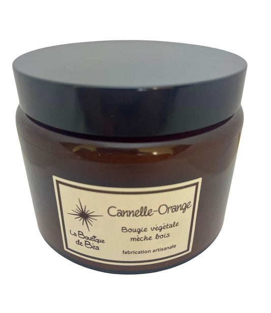 Bougie Artisanale Cannelle Orange Mèche Bois "La Boutique de Béa"