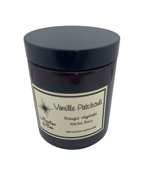 Bougie Artisanale Vanille Patchouli Mèche Bois "La Boutique de Béa"