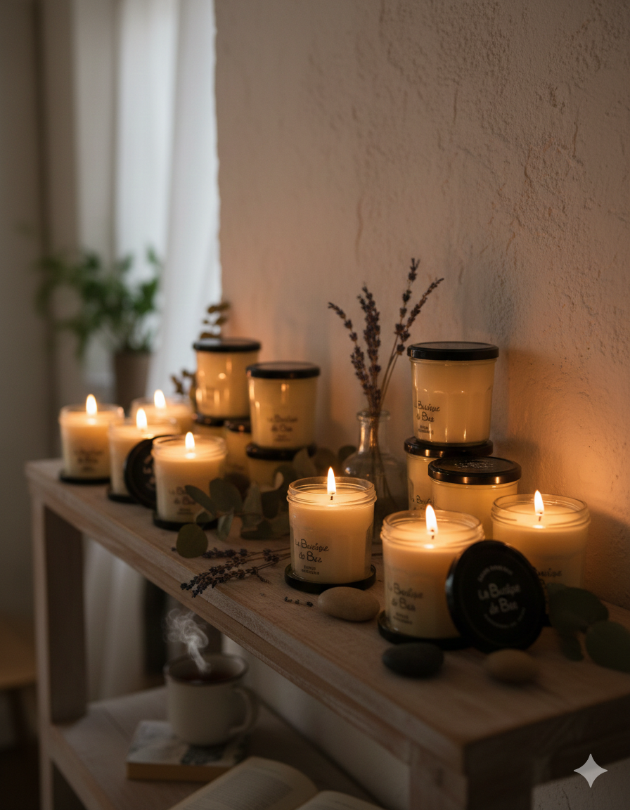 Bougie Artisanale Fleur de Coton Mèche Bois "La Boutique de Béa"