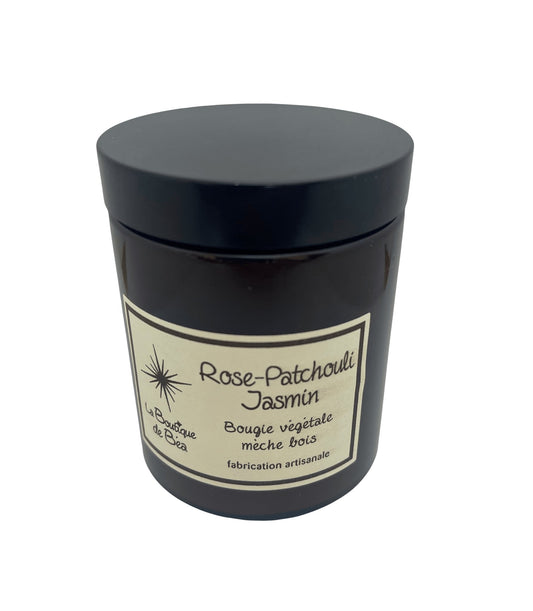 Bougie Artisanale Rose Patchouli Jasmin Mèche Bois "La Boutique de Béa"